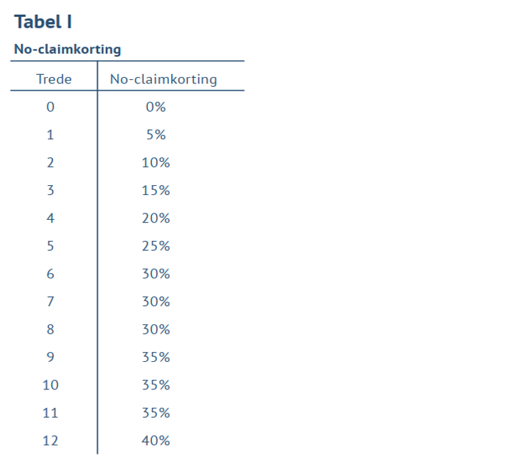 | 1. Meldet der Versicherungsnehmer in der Zeit vom 1. Januar bis einschließlich 31. Dezember keinen Schaden, dann erhält er im folgenden Versicherungsjahr einen (höheren) Rabatt auf den Beitrag gemäß Tabelle I. Dieser Schadenfreiheitsrabatt erhöht sich für jedes schadenfreie Jahr um eine Stufe von 5 % und kann einen Höchstrabatt von 25 % (Stufe 5) erreichen. | 1. Meldet der Versicherungsnehmer in der Zeit vom 1. Januar bis einschließlich 31. Dezember keinen Schaden, dann erhält er im folgenden Versicherungsjahr einen (höheren) Rabatt auf den Beitrag gemäß Tabelle I. Dieser Schadenfreiheitsrabatt erhöht sich für jedes schadenfreie Jahr um eine Stufe und kann einen Höchstrabatt von 40% (Stufe 12) erreichen. |