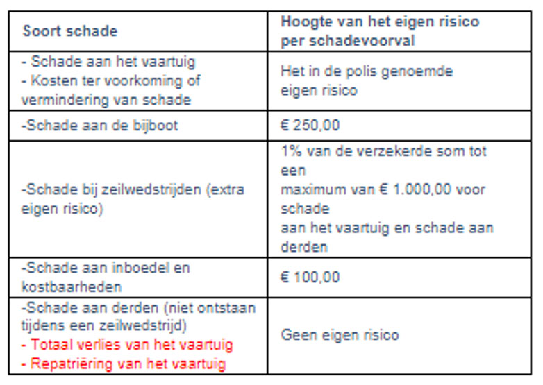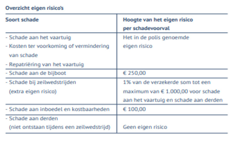 4. Er wordt geen eigen risico in mindering gebracht bij repatriëring van het vaartuig. |