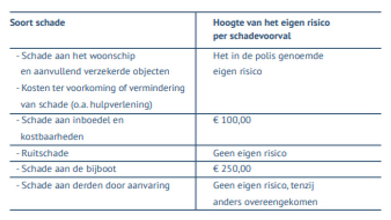 Aan rij van ‘Geen eigen risico’ toevoegen ‘- Totaal verlies van het woonschip’. In deze rij is ‘- Ruitschade’ al opgenomen. |